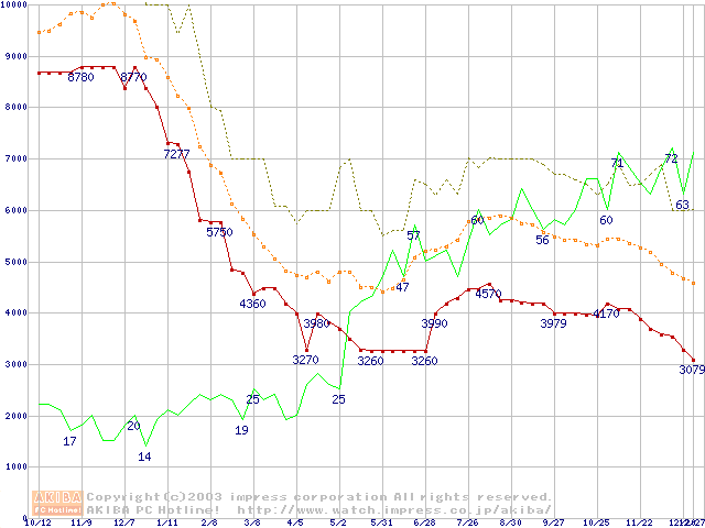 PC3200(DDR400) DDR SDRAM DIMMの最安値推移