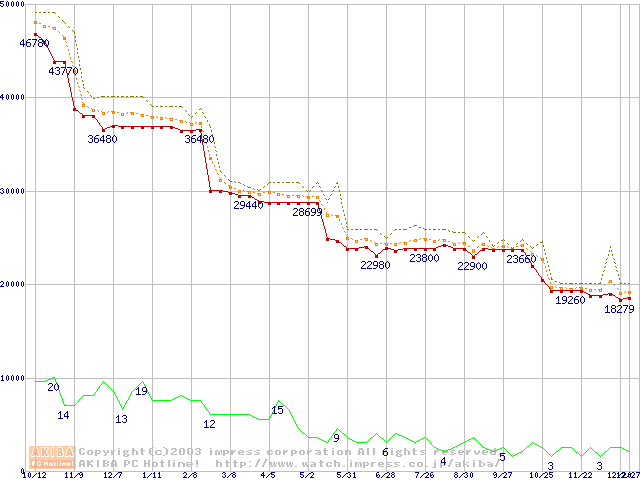 Socket 478 (micro-PGA,FSB 400MHz,L2 512KB,Northwood)の最安値推移