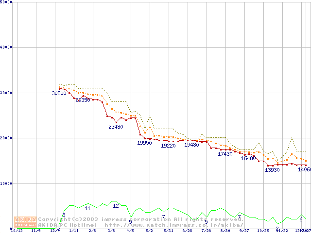 Socket A (OPGA,FSB 266MHz,L2 256KB,Thoroughbred)の最安値推移