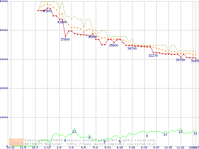 Xeon 2.66GHz(FSB533) リテールパッケージの価格推移