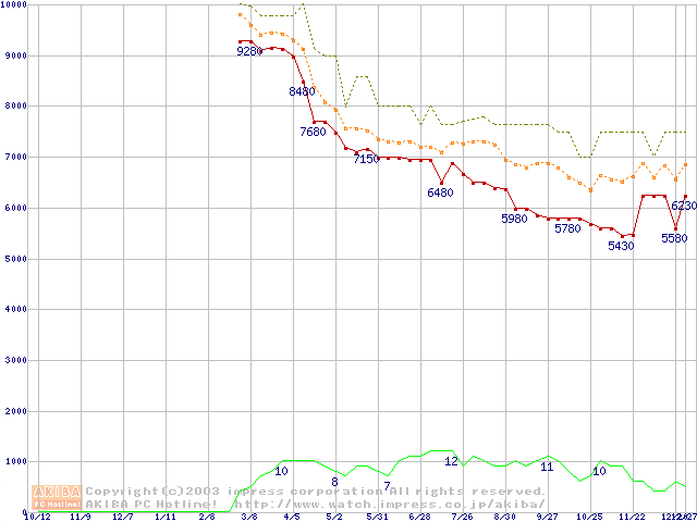 Socket A (OPGA,FSB 266MHz,L2 256KB,Thoroughbred)の最安値推移