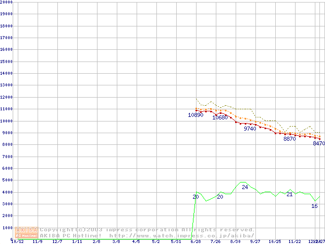 Socket 478 (micro-PGA,FSB 400MHz,L2 128KB,Northwood)の最安値推移