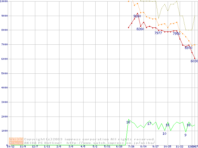 PC3200(DDR400) DDR SDRAM DIMMの最安値推移