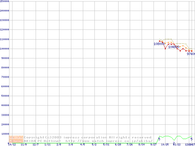 Socket 604 (micro-PGA,FSB 533MHz,L2 512KB,Prestonia)の最安値推移