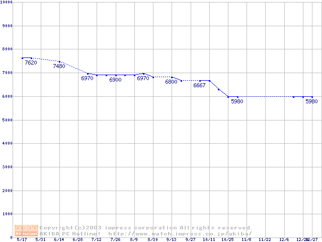 | [↓次グラフ]: | Socket A (PGA,FSB 266MHz,L2 256KB,Thunderbird)の最安値推移 |