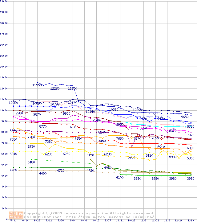 CPU主要製品の最安値推移