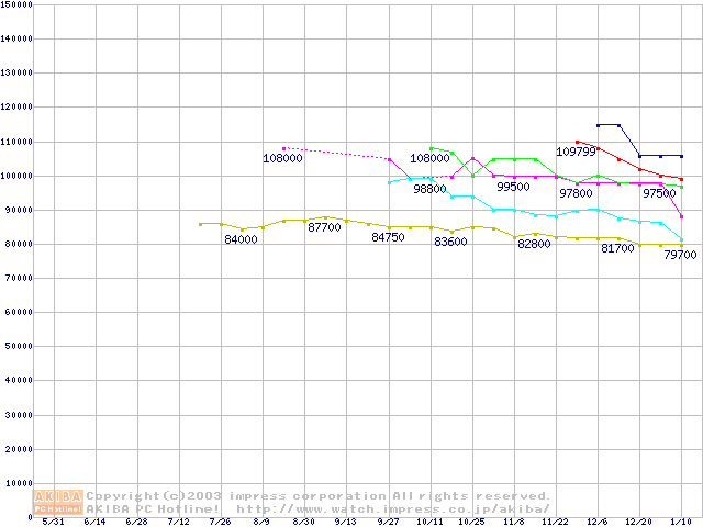 Socket A・FSB 266MHzの最安値推移