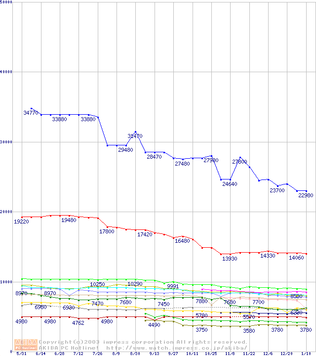 Socket A・FSB 266MHzの最安値推移