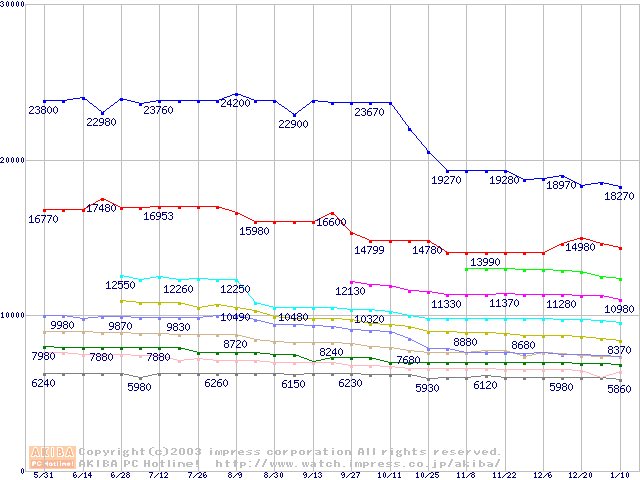 | [↓次グラフ]: | Socket 370・FSB 133MHzの最安値推移 |