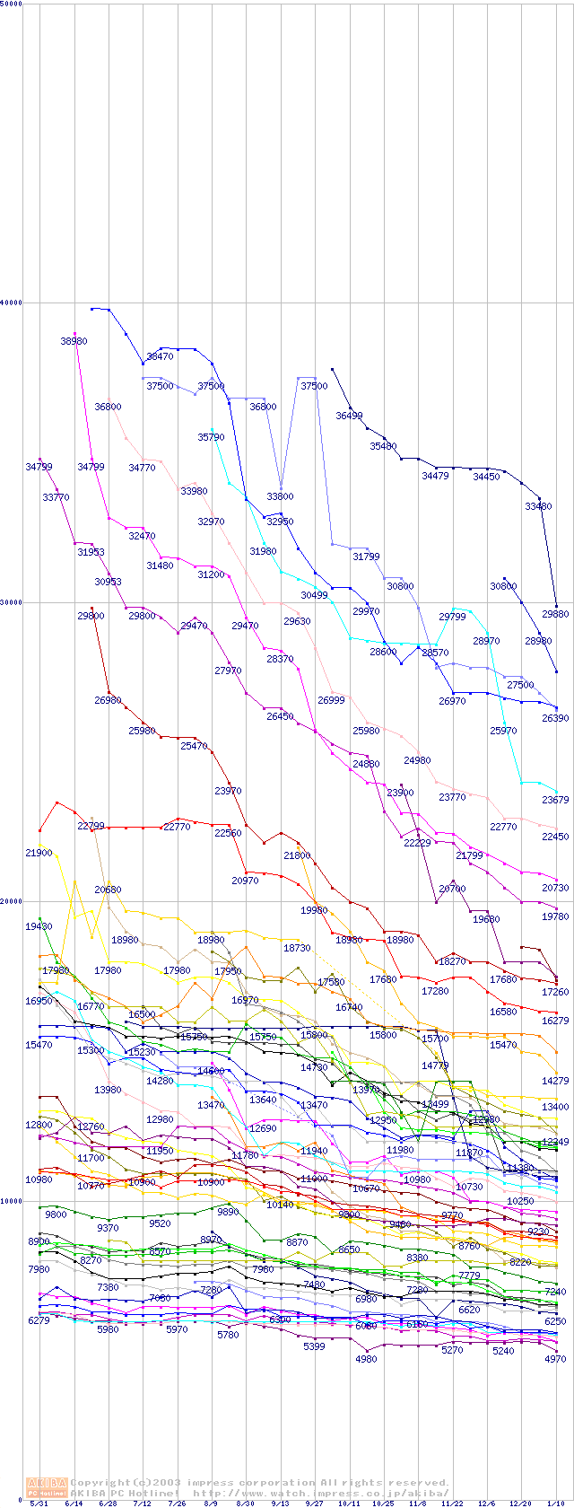 ※製品名をクリックすると個別のグラフを表示します ※点線部は販売店が確認できなかった、または調査データがないことを示します |