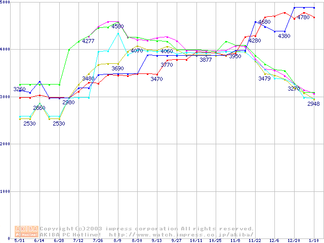 256MBモジュールの最安値推移