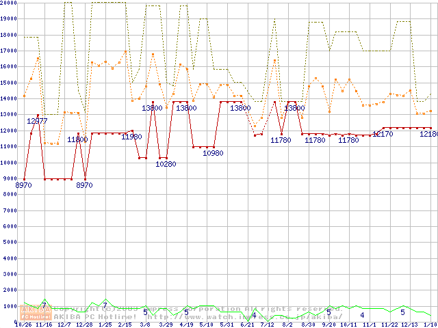 PC133 SDRAM DIMM CasLatency=3 ECC対応 Registeredタイプの最安値推移