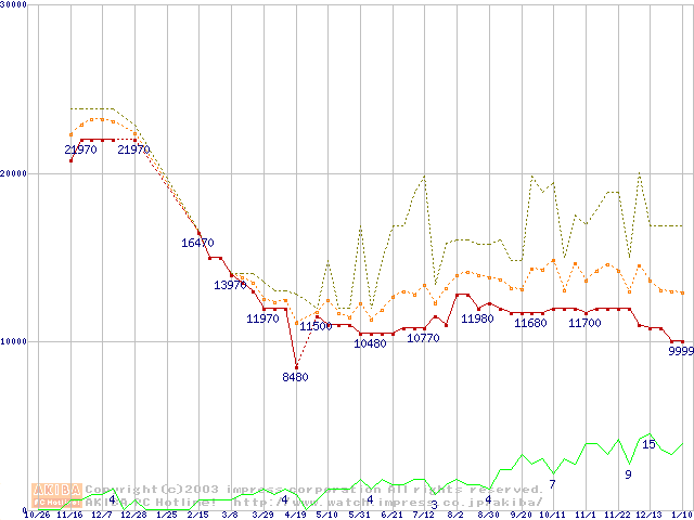 PC2700(DDR333) DDR SDRAM DIMM ECC対応 Registeredタイプの最安値推移