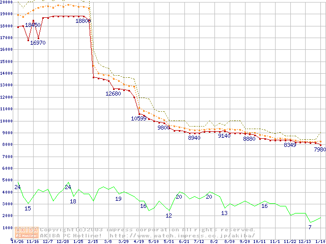 Athlon XP 2200+ (1.8GHz) リテールパッケージの価格推移