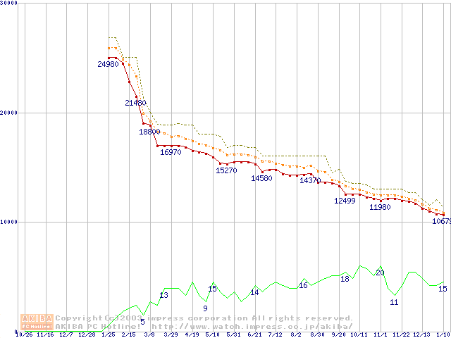 HDD主要製品の最安値推移