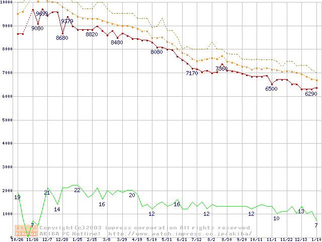 DiamondMax 16 (5400rpm,UltraATA/133,2MB,80GB/Platter,FDB)の最安値推移