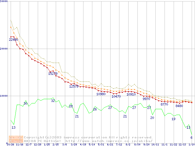 Deskstar 180GXP IC35L120AVV207-0 (120GB)の価格推移