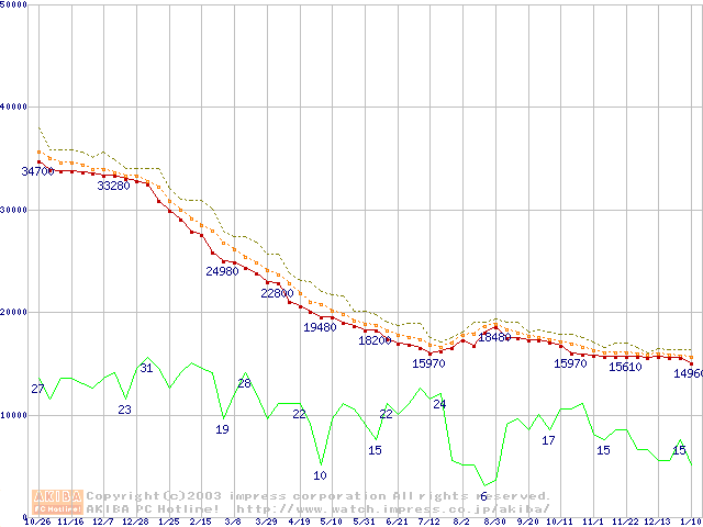 Deskstar 180GXP (7200rpm,8MB,UltraATA/100,FDB)の最安値推移