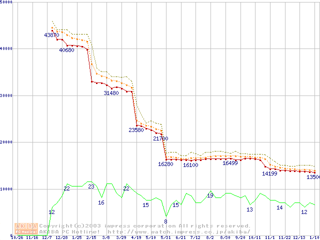Athlon XP 2700+ (2.17GHz) リテールパッケージの価格推移