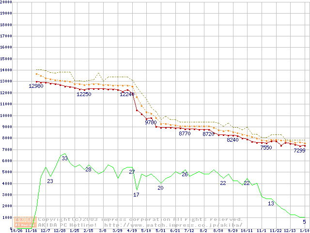 Socket 478 (micro-PGA,FSB 400MHz,L2 128KB,Northwood)の最安値推移