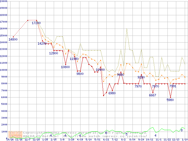 PC3500(DDR433) DDR SDRAM DIMMの最安値推移