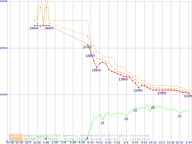 DiamondMax Plus 9 (7200rpm,8MB,SerialATA/150,FDB)の最安値推移