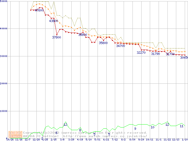 Xeon 2.66GHz(FSB533) リテールパッケージの価格推移