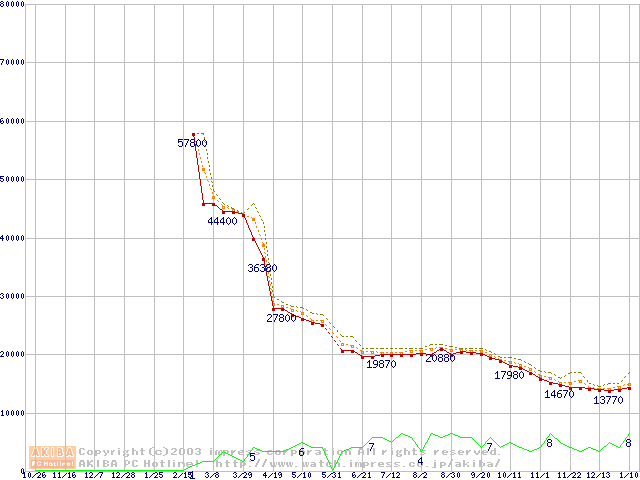Socket A (OPGA,FSB 333MHz,L2 512KB,Barton)の最安値推移