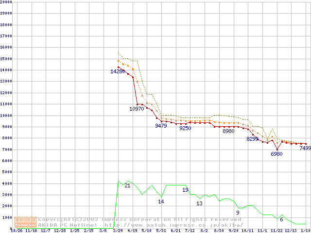 Socket 478 (micro-PGA,FSB 400MHz,L2 128KB,Northwood)の最安値推移