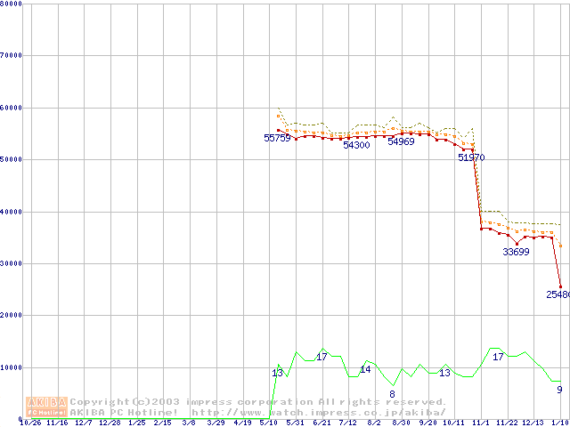 Athlon XP 3200+ (2.2GHz) リテールパッケージの価格推移
