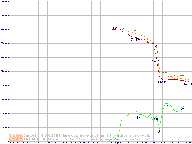 Socket 478 (micro-PGA,FSB 800MHz,L2 512KB,Hyper-Threading,Northwood)の最安値推移