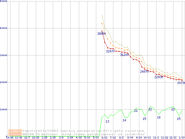 HDD主要製品の最安値推移