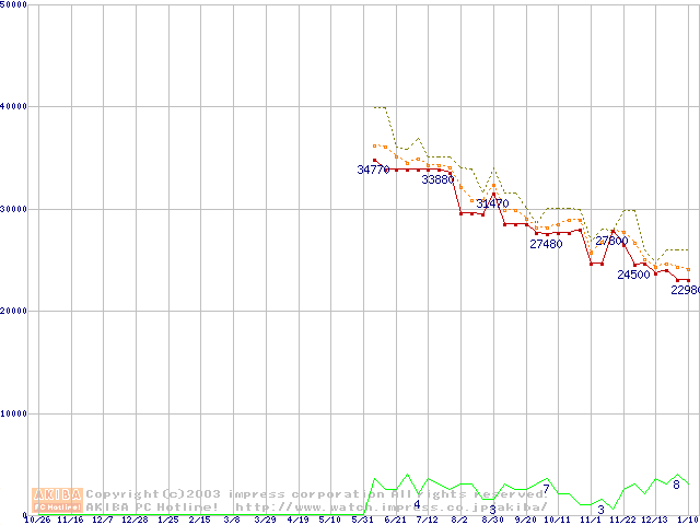 Athlon MP 2800+ (2.13GHz) リテールパッケージの価格推移