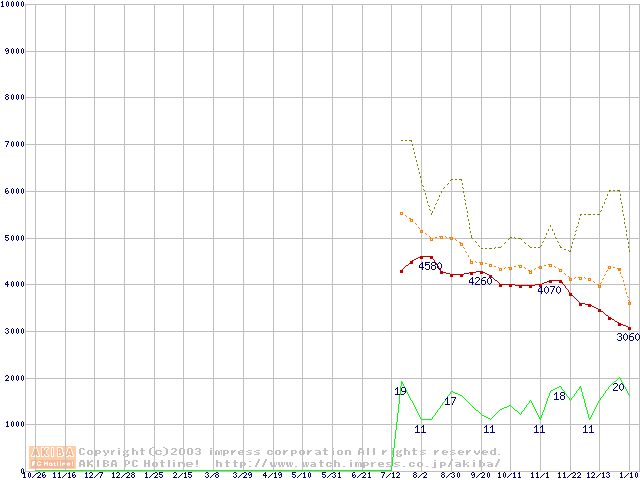 PC3200(DDR400) DDR SDRAM DIMMの最安値推移
