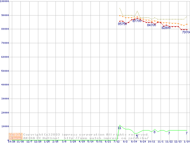 Socket 604 (micro-PGA,FSB 533MHz,L2 512KB,Prestonia)の最安値推移