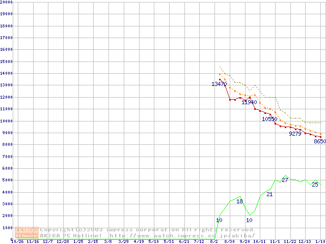 Deskstar 7K250 (7200rpm,UltraATA/100,FDB)の最安値推移