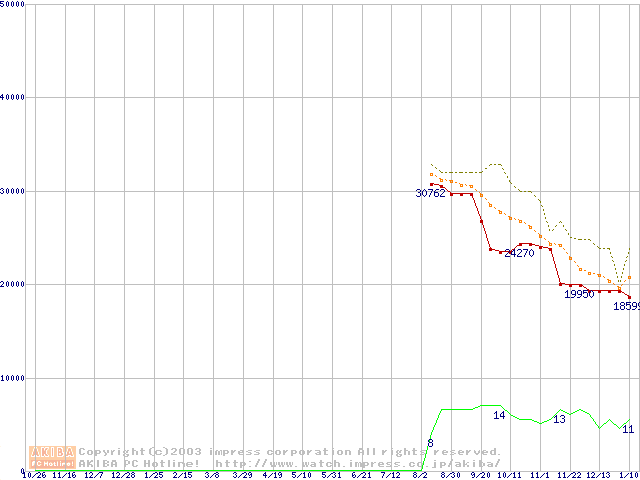 Opteron 140(1.4GHz) リテールパッケージの価格推移