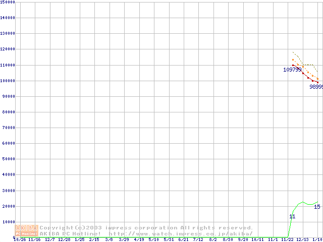 Socket 478 (micro-PGA,FSB 800MHz,L2 512KB,L3 2MB,Hyper-Threading,Gallatin)の最安値推移