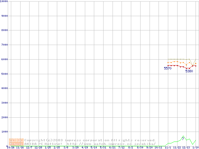 Socket A (OPGA,FSB 266MHz,L2 64KB,Applebred)の最安値推移