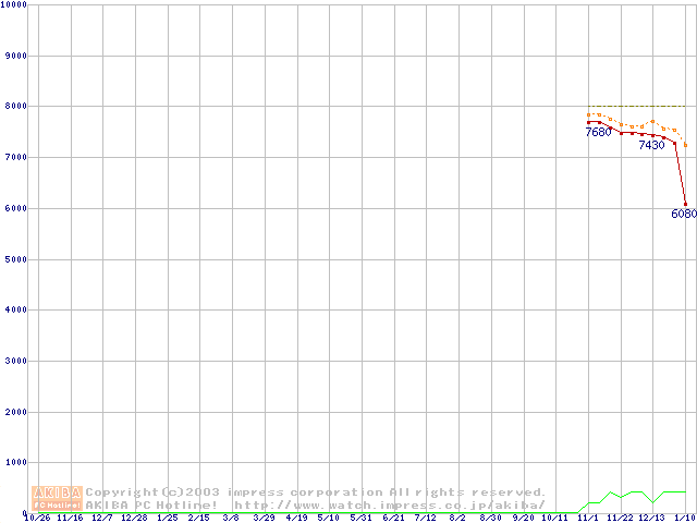 Socket A (OPGA,FSB 266MHz,L2 256KB,Thoroughbred)の最安値推移