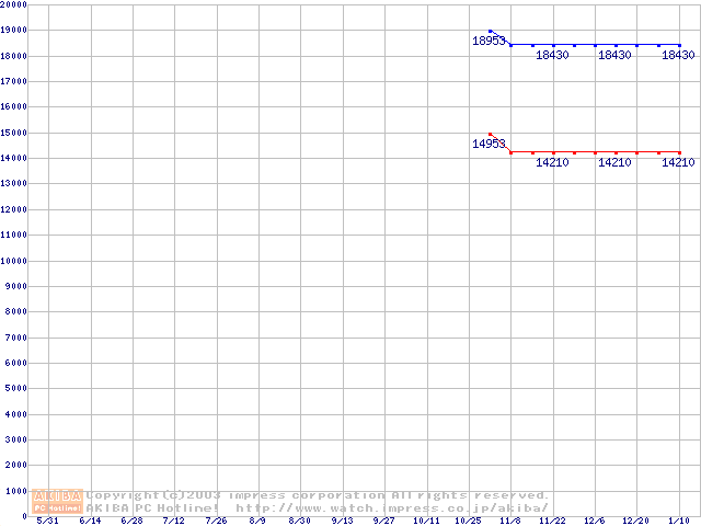 | [↑前グラフ]: | MKシリーズ (9.5mm,4200rpm,2MB,FDB,30GB/Platter)の最安値推移 |