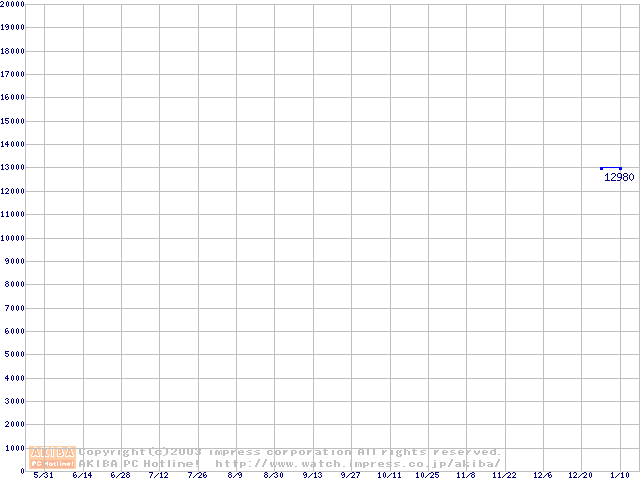 | [↑前グラフ]: | Travelstar 40GNX (9.5mm,5400rpm,UltraATA/100,8MB,FDB,20GB/Platter)の最安値推移 |