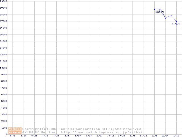 | [↑前グラフ]: | MHT20x0ATシリーズ (9.5mm,4200rpm,UltraATA/100,2MB,FDB,40GB/Platter,FDB)の最安値推移 |
