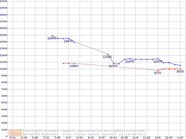 | [↑前グラフ]: | SpinPoint P80 (7200rpm,UltraATA/133,8MB)の最安値推移 |