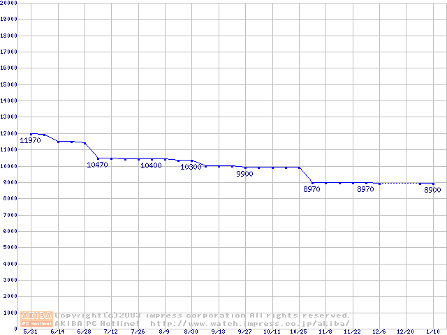 | [↓次グラフ]: | WD Caviar (7200rpm,UltraATA/133,2MB)の最安値推移 |