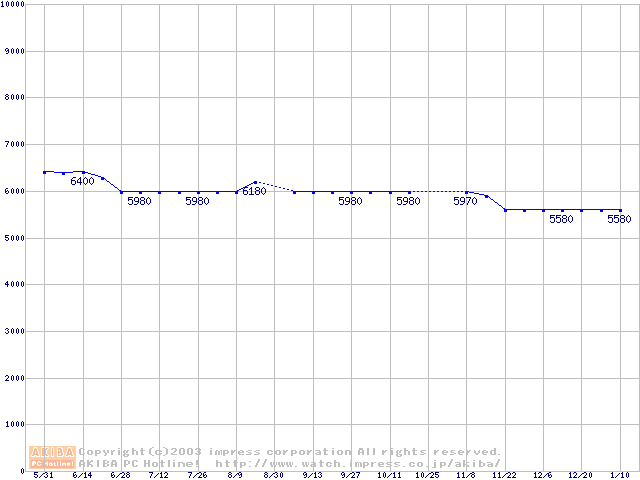 | [↑前グラフ]: | WD Caviar (7200rpm,UltraATA/100,2MB)の最安値推移 |