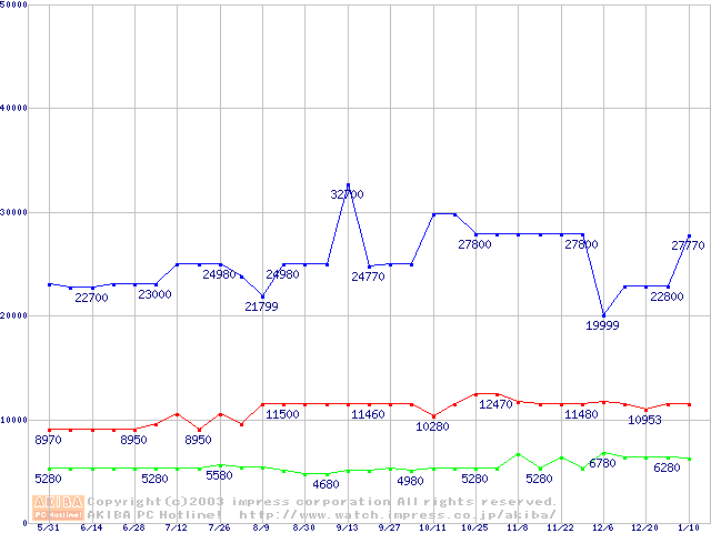 | [↑前グラフ]: | PC2100(DDR266) DDR SDRAM DIMM(CL 2.0)の最安値推移 |