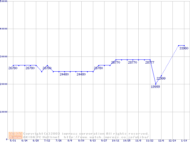 | [↑前グラフ]: | PC800-40 DRDRAM RIMMの最安値推移 |