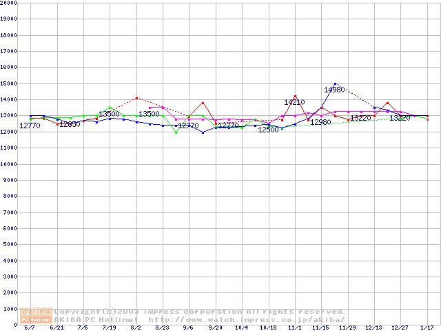 | [↑前グラフ]: | 2.5インチHDD 20GB~40GB未満(9.5mm厚)の最安値推移 |