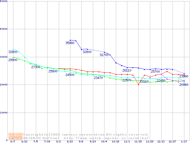| [↓次グラフ]: | 2.5インチHDD主要製品の最安値推移 |